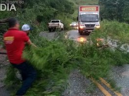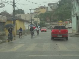 22MAI – Segunda-feira chuvosa em Mantena, trabalhador se protegeu