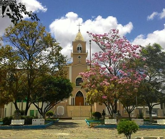 08OUT – Ipê florido na praça da Matriz, parte do cartão postal