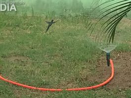 28OUT – Pássaro se refrescando no calor sufocante em Mantena
