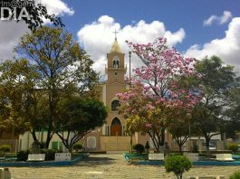 08OUT – Ipê florido na praça da Matriz, parte do cartão postal