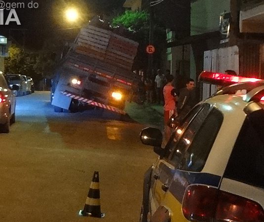 31MAI – Caminhão fica com a carga inclinada após problemas mecânicos no centro da cidade