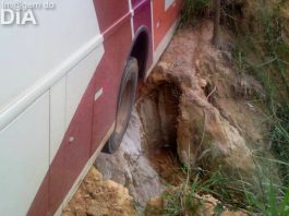 29MAI – Ônibus da linha Mantena x Mantenópolis fica preso em buraco