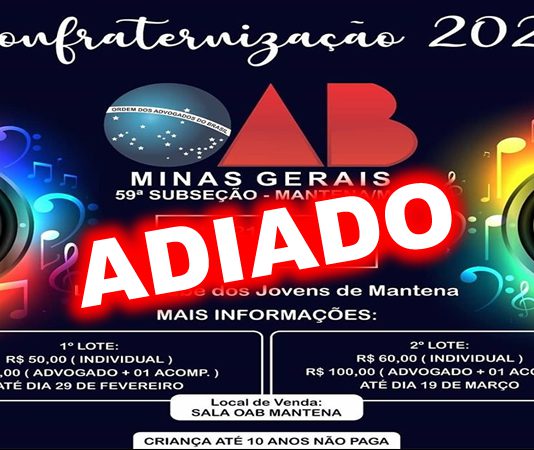 Coronavírus: OAB Mantena adia festa de Confraternização