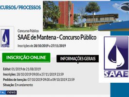Termina nesta quarta o prazo de inscrição no concurso do SAAE