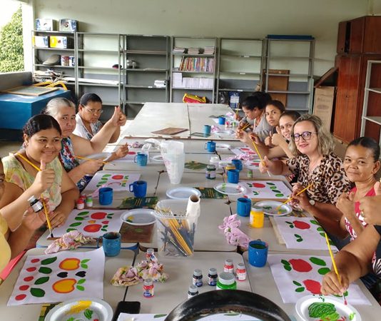 Mulheres em Vargem Alegre recebendo Curso de Pintura