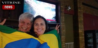 Max Pinto e o filho Davi festejando vitória do Brasil