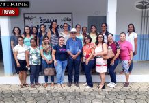 Diretora e funcionários da Escola em Nazário recebendo visitas