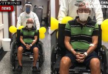 O aniversariante Valtinho recebendo o abraço da família
