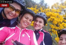 Meninas do Pedal aproveitando a paisagem colorida em Mantena