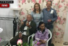 O aniversariante Valtinho recebendo o abraço da família