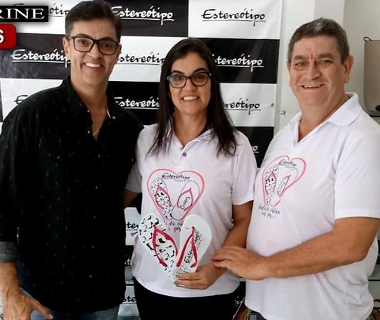 Casal comemorando 15 anos da Esteriótipo Calçados em Mantena