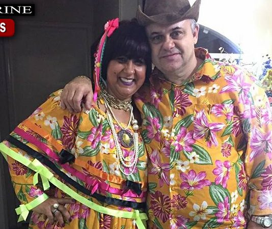 Casal mantenense participando a rigor do Arraiá do Cursilho em Mantena