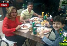 Família saboreando as deliciosas pizzas da Dona Olga