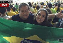 Max Pinto e o filho Davi festejando vitória do Brasil