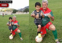 Avô e neto prestigiando o futebol em Mantena