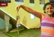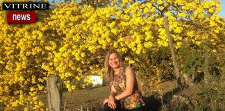 Nossa amiga Grasiele encantada com a Casa de cabeça pra baixo