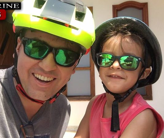 Max Pinto e o filho Davi festejando vitória do Brasil
