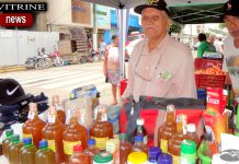 Sr. Nilo e seus produtos naturais na feira livre em Mantena