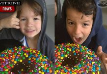 Daniel e Pedro se divertindo com bolo colorido da mamãe