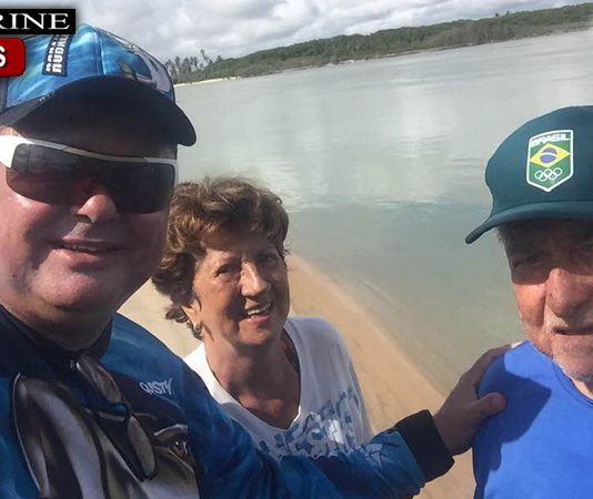 Max Pinto e o filho Davi festejando vitória do Brasil