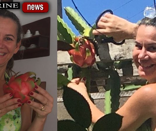 A Mantenense Sirléia colhendo sua primeira Pitaya