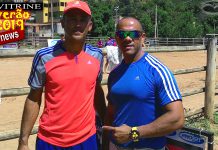 Max Pinto e o filho Davi festejando vitória do Brasil