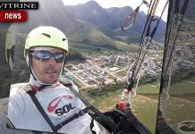 Piloto mantenense de vôo livre sobrevoando Lajinha de Pancas