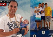 Max Pinto e o filho Davi festejando vitória do Brasil