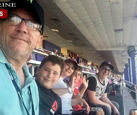 Max Pinto e o filho Davi festejando vitória do Brasil