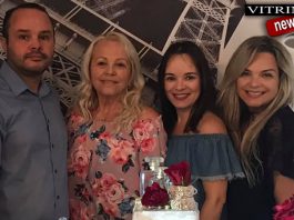 A Mantenense ausente Grasiele Marques soprando velinhas