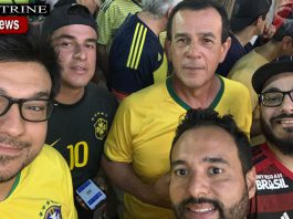 Max Pinto e o filho Davi festejando vitória do Brasil