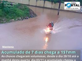 Acumulado de chuva em 48 horas próximo dos 80mm
