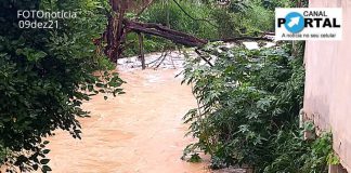 Mantena, córrego com 1,70 mts acima do nível normal