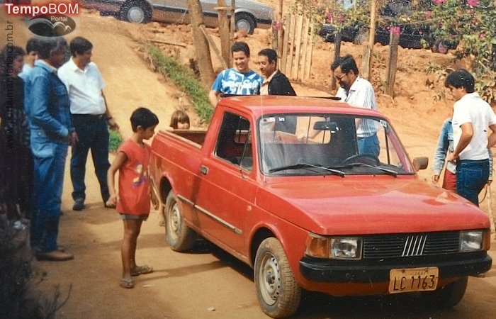 Primeiro carro – Famílias sempre registravam fotos ao redor dos carros, pois os primeiros a possuírem os veículos de passeio era como se fosse um sonho realizado, uma possibilidade de poucos. Na foto um ford corcel.