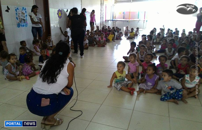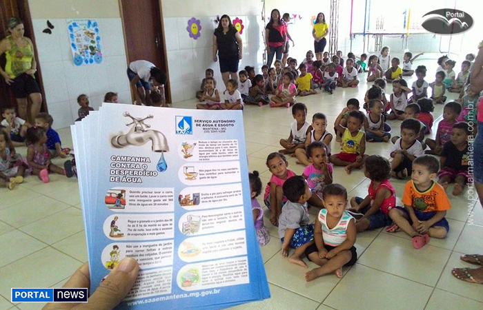 Uma palestra foi direcionada aos alunos no salão da Creche, ministrada por professoras e educadoras e ainda por um representante do SAAE de Mantena.