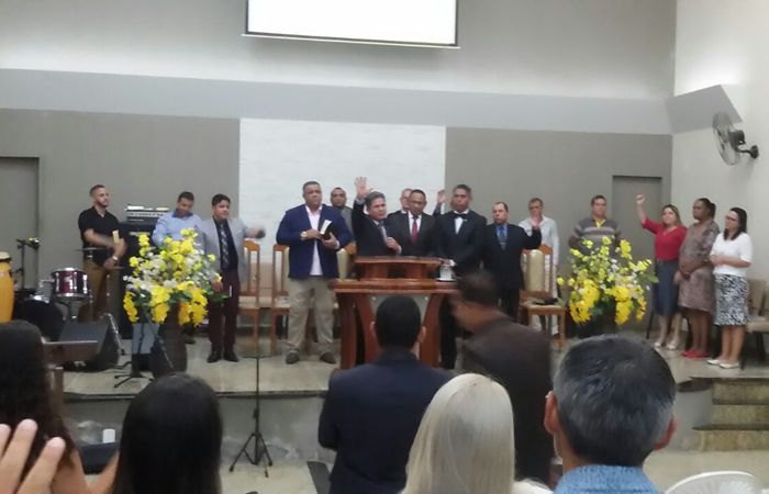 Pastor Raulito deu as boas vindas a todos e disse que é um culto marcante, pois, foi a primeira vez que se reuniram tantos policiais das polícias dos dois estados em um mesmo templo de adoração a Deus em Mantena.