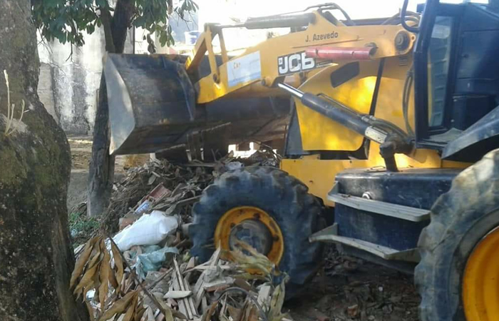 Colaboradores tiveram o auxílio de maquinário e caçambas para a retirada de toneladas de entulho e lixo que estavam acumulados.
