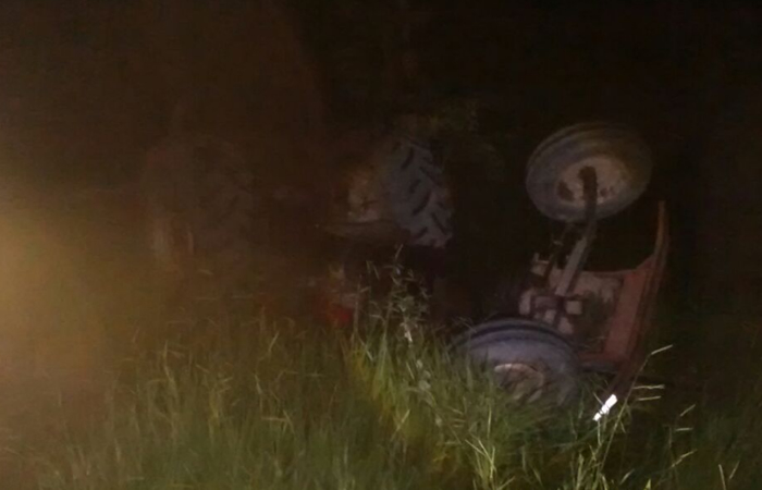 Já o condutor do trator disse que transitava na rodovia quando sentiu uma pancada na traseira do trator, vindo a sair da pista capotando e parando com os pneus para cima num pasto às margens da via.