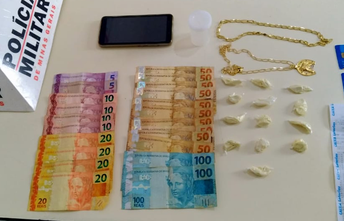 O autor relatou que não trabalha há mais de 04 meses e não apresentou documentação que comprovasse a origem das jóias e do dinheiro. Diante do fato, todo o material foi apreendido e ao autor foi dado voz de prisão em flagrante delito por tráfico de drogas.