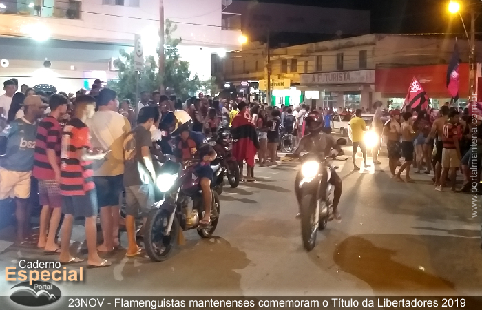 A Praça da Bíblia, no centro em Mantena foi o ponto de encontro da animada torcida mantenense do Flamengo, que comemorou bastante na noite do último sábado, dia 23 de Novembro, a conquista do Bi Campeonato da Taça Libertadores da América 2019.