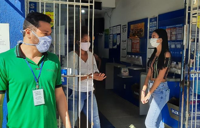 O grupo de apoio é formado por 121 estagiários, que se revezam durante o dia, nos principais pontos de maior movimentação de pessoas, como nas portas dos bancos, loterias, lojas e farmácias que prestam serviços de autoatendimento bancário, auxiliando na organização das filas, para evitar aglomeração das pessoas, e orientando a população sobre a importância do uso de máscaras e álcool gel 70% nesse período de pandemia.