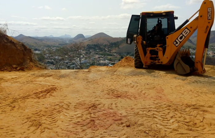 As obras de terraplanagem foram concluídas na última semana e no local foi construído um platô (base de concreto e ferragem) medindo 3 x 6 mts, que servirá de apoio para os dois reservatórios.