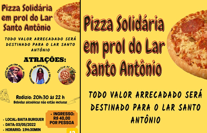 O evento que está sendo denominado de “Pizza Solidária”, terá todo o valor arrecadado destinado para a instituição.