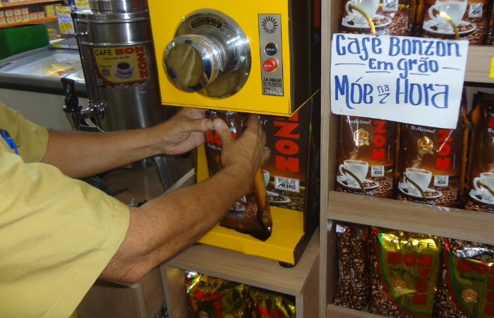 No mesmo saquinho onde antes estavam os grãos, o cliente armazena o pó e pronto, é só levar pra casa e se deliciar com um paladar inconfundível. Quem já é cliente do Café Bonzon afirma que foi uma tremenda inovação, valorizando ainda mais um produto que já vem ganhado este mercado na região, sendo líder em vendas.
